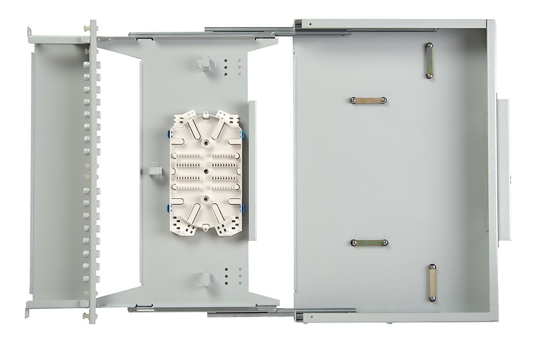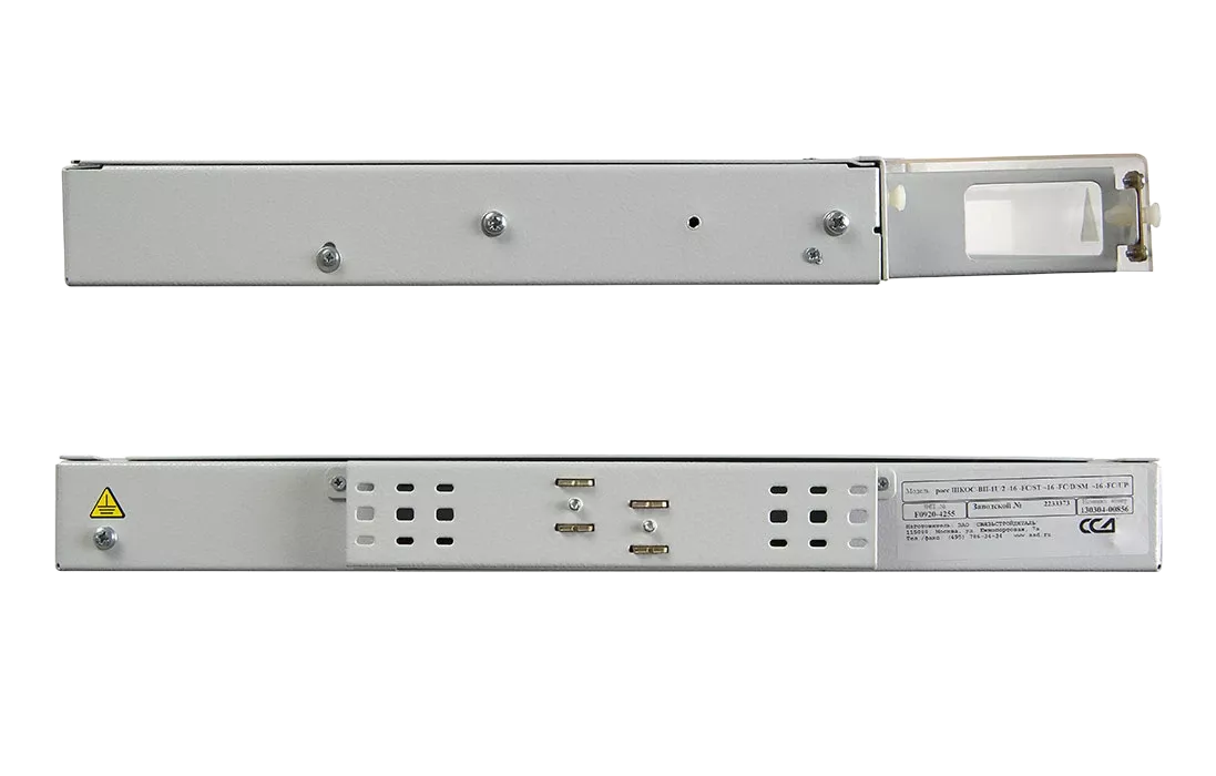 Кросс имеет выдвижную оптическую полку, что облегчает монтаж и последующее обслуживание. Для защиты патчкордов, подключаемых к розеткам кросса, корпус оснащён полкой-органайзером с защитным пластиковым экраном сверху. Подключаемые патчкорды можно вывести через специальные окна с левой и правой стороны кросса.