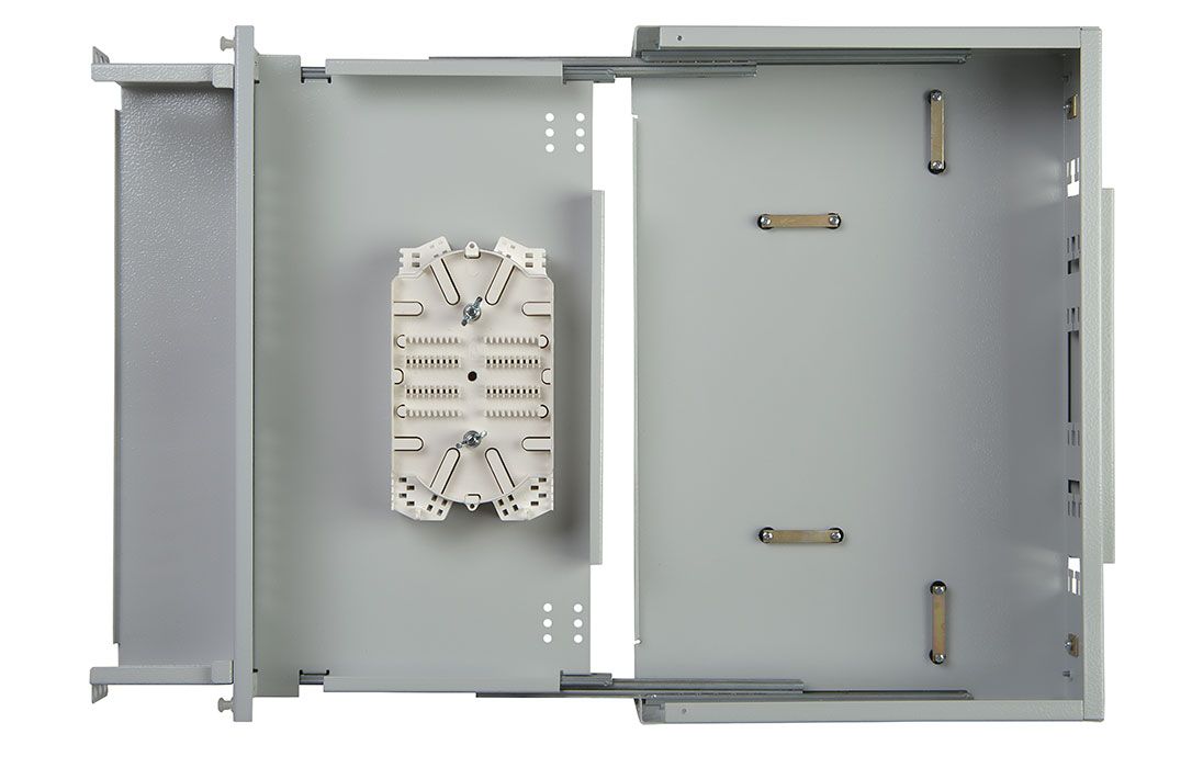 Кросс имеет выдвижную оптическую полку, что облегчает монтаж и последующее обслуживание. Для защиты патчкордов, подключаемых к розеткам кросса, корпус оснащён полкой-органайзером с защитным пластиковым экраном сверху. Подключаемые патчкорды можно вывести через специальные окна с левой и правой стороны кросса.