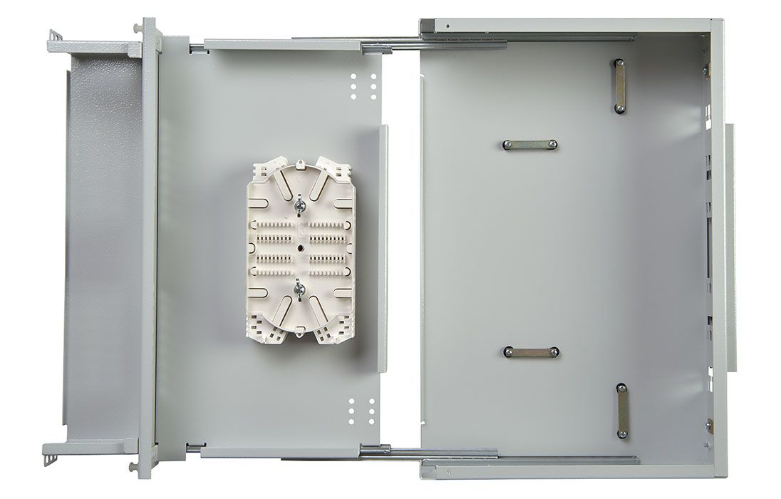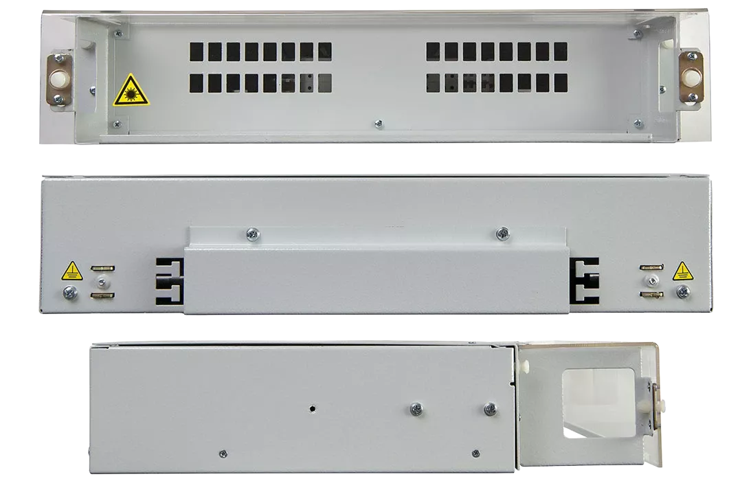 Кросс имеет выдвижную оптическую полку, что облегчает монтаж и последующее обслуживание. Для защиты патчкордов, подключаемых к розеткам кросса, корпус оснащён полкой-органайзером с защитным пластиковым экраном сверху. Подключаемые патчкорды можно вывести через специальные окна с левой и правой стороны кросса.