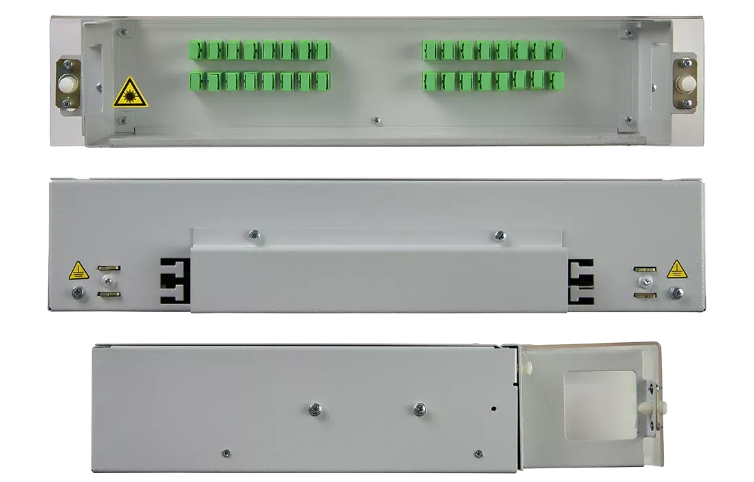 Кросс имеет выдвижную оптическую полку, что облегчает монтаж и последующее обслуживание. Для защиты патчкордов, подключаемых к розеткам кросса, корпус оснащён полкой-органайзером с защитным пластиковым экраном сверху. Подключаемые патчкорды можно вывести через специальные окна с левой и правой стороны кросса.