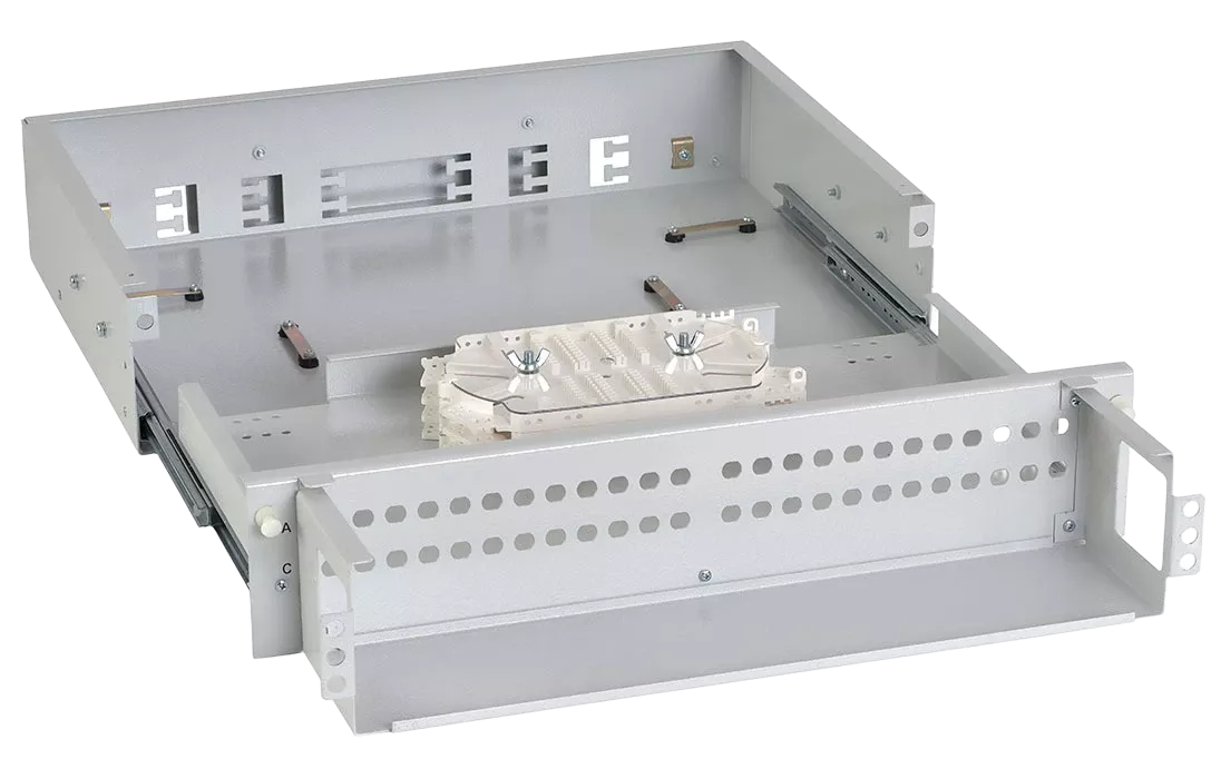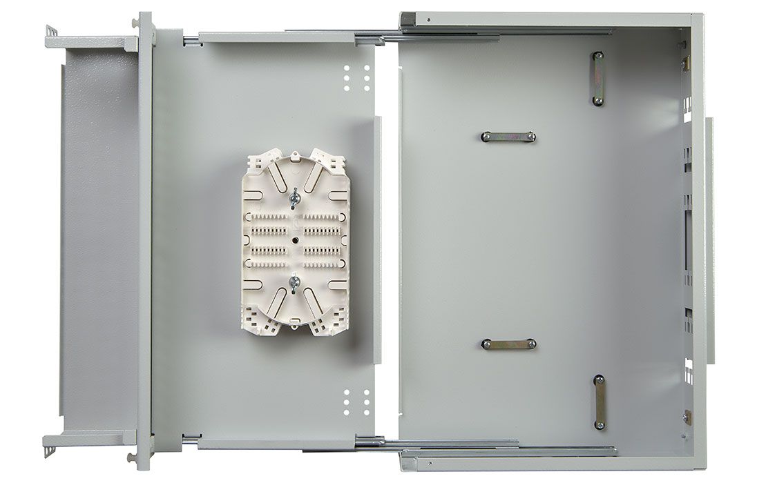 Кросс имеет выдвижную оптическую полку, что облегчает монтаж и последующее обслуживание. Для защиты патчкордов, подключаемых к розеткам кросса, корпус оснащён полкой-органайзером с защитным пластиковым экраном сверху. Подключаемые патчкорды можно вывести через специальные окна с левой и правой стороны кросса.