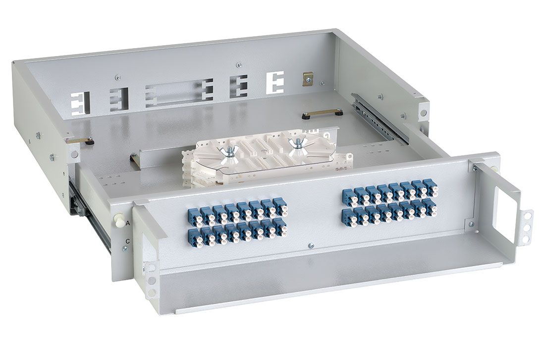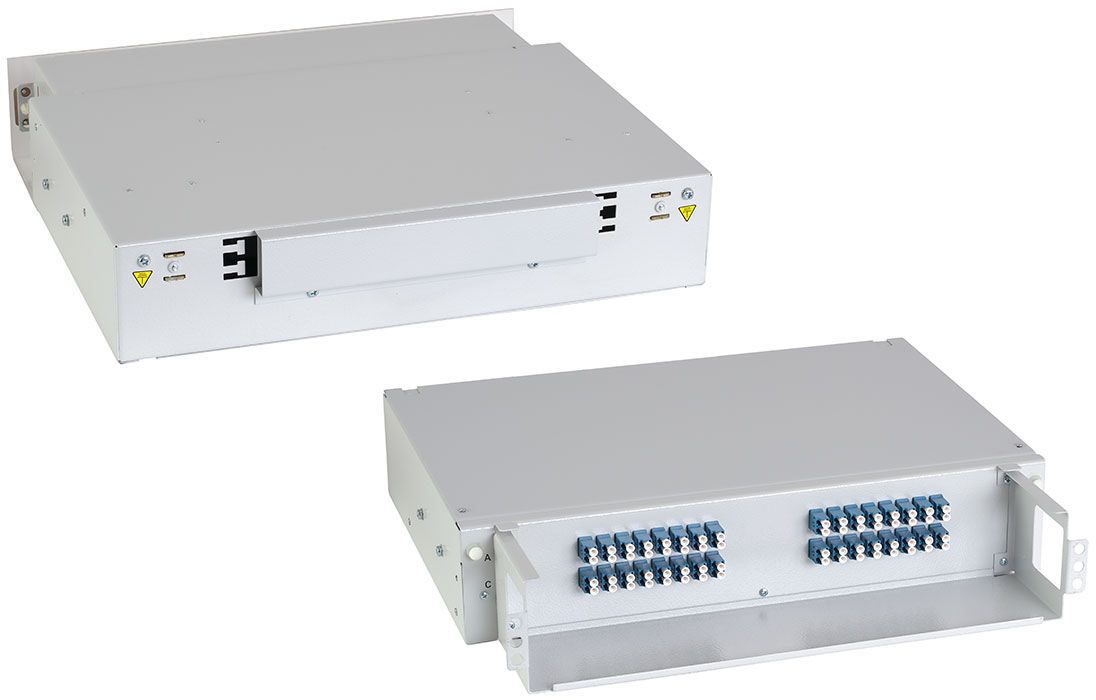 Кросс имеет выдвижную оптическую полку, что облегчает монтаж и последующее обслуживание. Для защиты патчкордов, подключаемых к розеткам кросса, корпус оснащён полкой-органайзером с защитным пластиковым экраном сверху. Подключаемые патчкорды можно вывести через специальные окна с левой и правой стороны кросса.