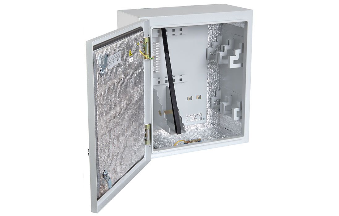 Корпус шкафа изнутри оклеен теплоизоляционным материалом. Внутри шкафа располагаются линейный кросс на 8-12 оптических волокон и абонентский кросс ёмкостью до 160 оптических волокон и планарные разветвители. Оптические кабели вводятся в шкаф через отверстия выбивного типа в нижней стенке. В состоянии поставки отверстия заглушены. При монтаже заглушки выбиваются по числу вводимых кабелей. В отверстиях устанавливаются фитинги.