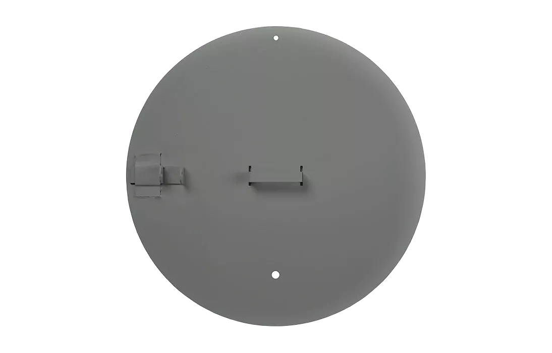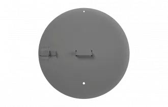 Представляет собой стальную плиту толщиной 4 мм круглой формы, где в качестве запорного элемента имеет подвижную задвижку и скобу с отверстиями для навесного замка. После того, как задвижка входит в паз корпуса люка, в отверстия задвижки и скобы устанавливается навесной замок (приобретается дополнительно).