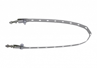 Лента с большим количеством круглых отверстий изготовлена из нержавеющей стали. При монтаже лента огибается вокруг опоры. Требуемая длина ленты регулируется путем загиба излишков по краям ленты. В торцевые отверстия, образовавшихся в результате загибов петель, вставляются резьбовые тяги, после чего петли фиксируются болтами. Тяги устанавливаются в крепёжные отверстия устройств подвески и с помощью затягивания гаек производится натяжение ленты.