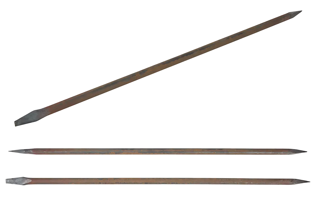 Представляет собой стержень, изготовленный из прочной стали, дополнительно обработанный антикоррозийными средствами. Один конец стержня заточен под карандаш, а другой сплюснут.