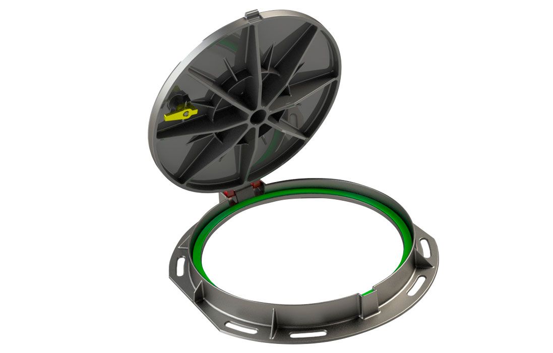 Предназначен для установки на горловины колодцев (смотровых устройств) инженерных сетей, расположенных в зонах городских автодорог с интенсивным движением. Обеспечивает доступ в колодцы для проведения монтажных, инспекционных и ремонтных работ. Выдерживают нормативную нагрузку 25 тонн сил (250 кН).