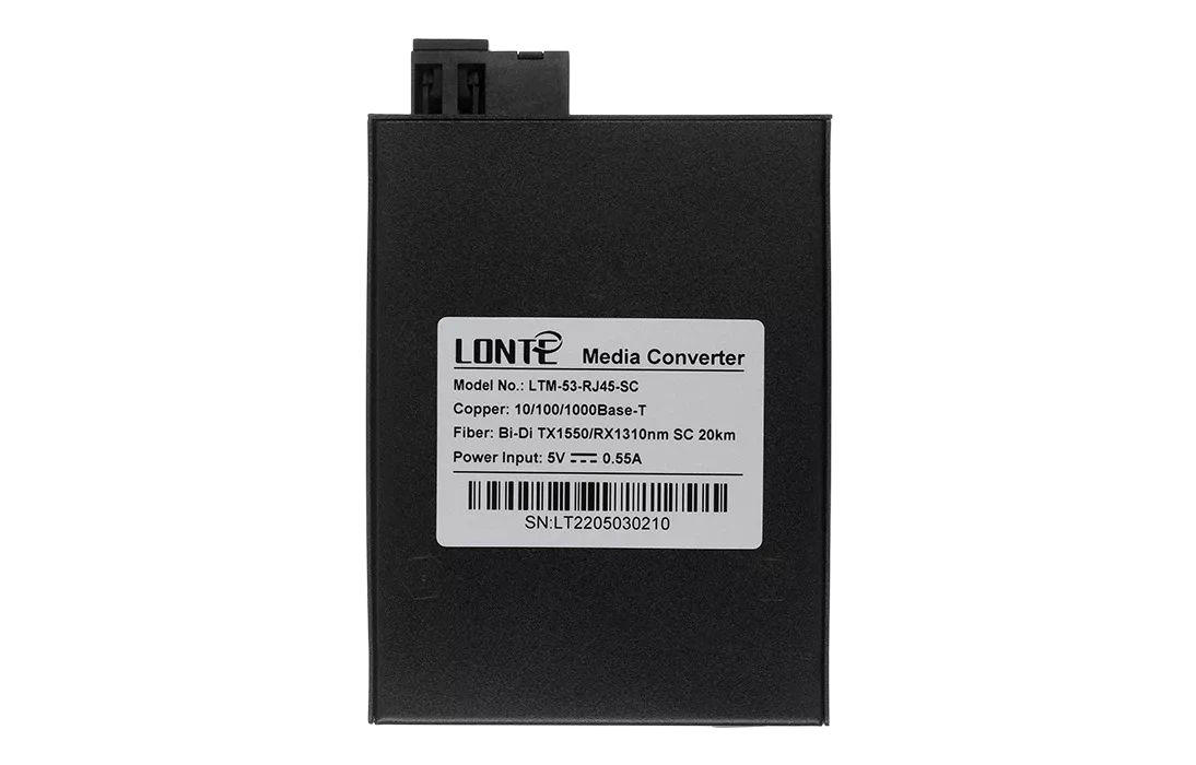 Медиаконвертер осуществляют преобразование интерфейсов «витая пара – одномодовое оптическое волокно» для сетей Ethernet 10/100/1000BASE-TX и 1000BASE-FX. Устройства позволяют одновременно передавать и получать сигналы на длинах волн 1310 нм и 1550 нм по одному оптическому волокну на расстояние до 20 км. Медиаконвертер имеет 1 порт RJ-45 для витой пары и 1 порт для оптического волокна (SC разъем).