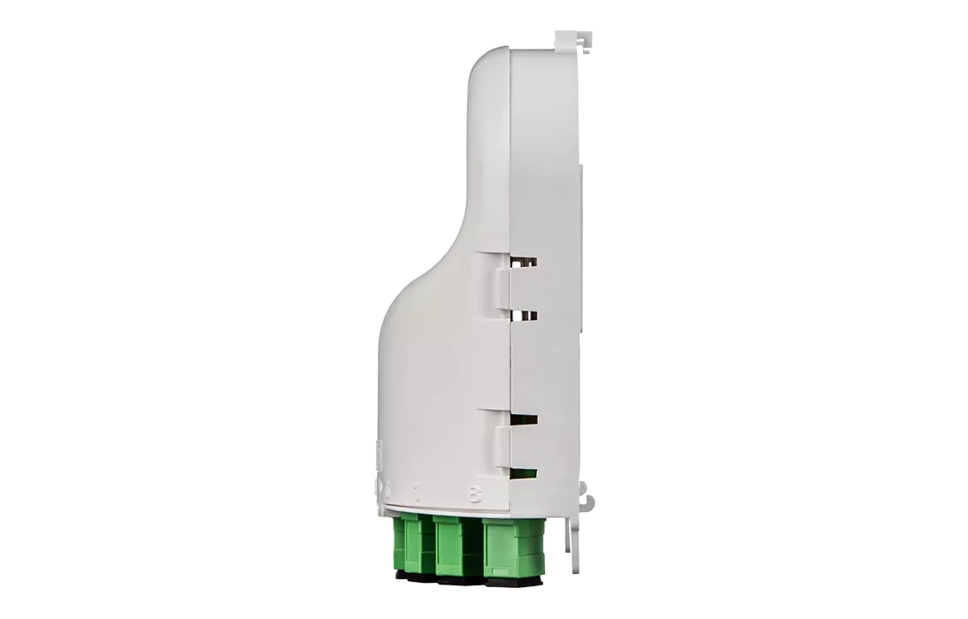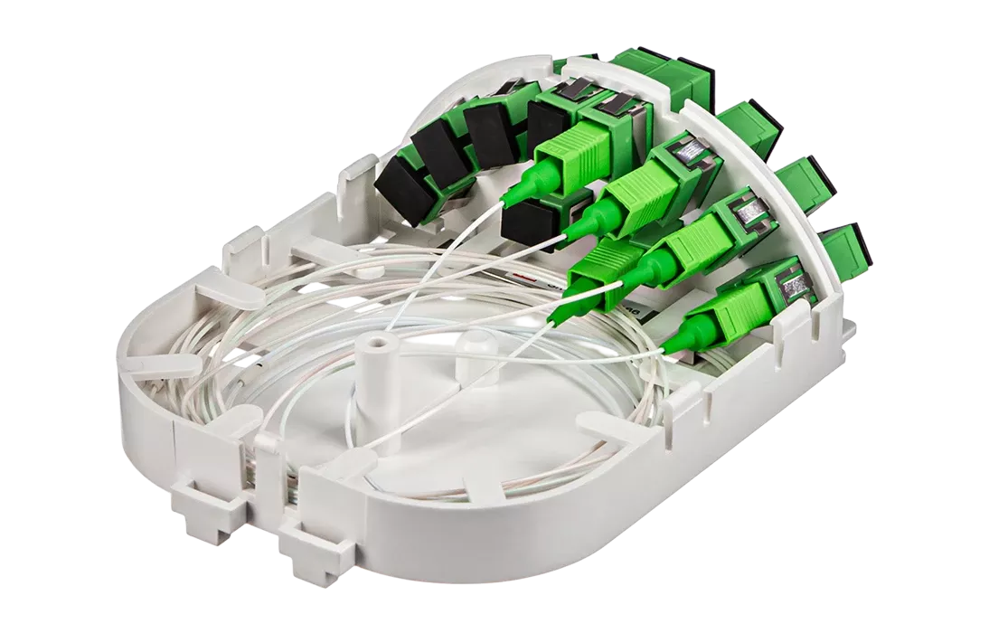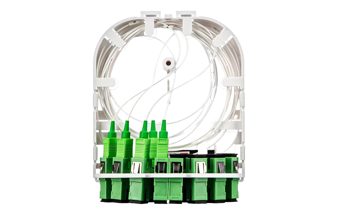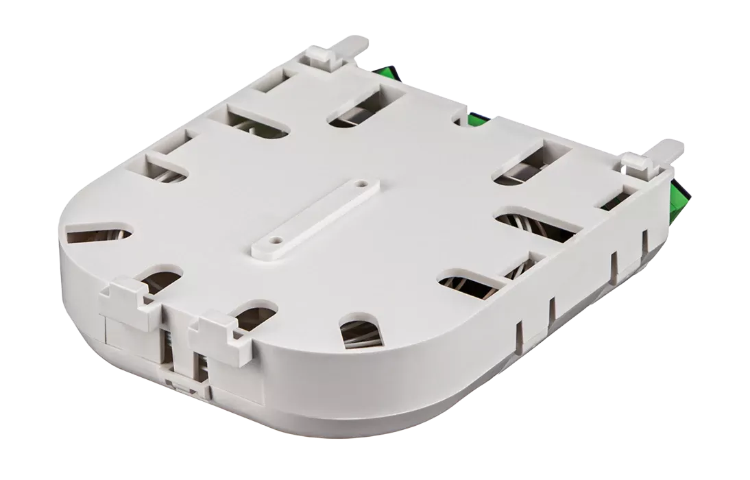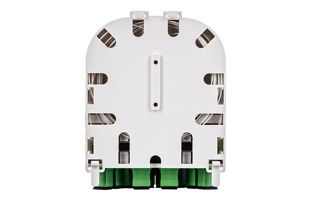 Представляет из себя пластиковый корпус с местами для установки разветвителей и органайзерами для укладки волокон. На лицевой панели расположена адаптерная планка на 10 адаптеров SC типа. Закрывается защитной крышкой, выполненной как и корпус из пластика белого цвета.