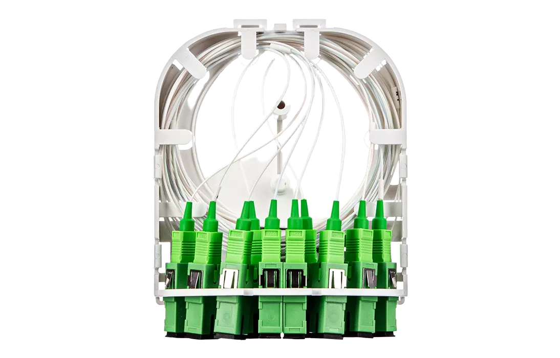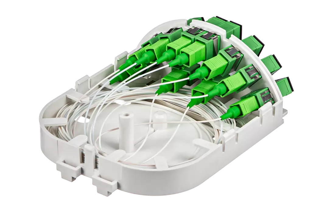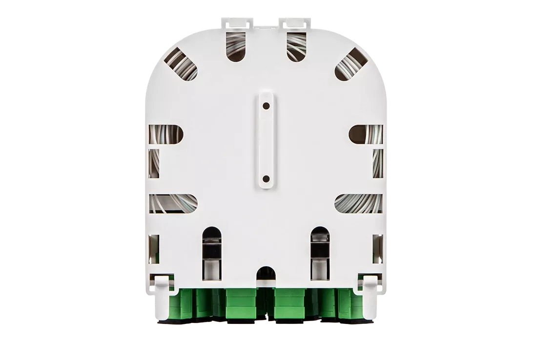 Представляет из себя пластиковый корпус с местами для установки разветвителей и органайзерами для укладки волокон. На лицевой панели расположена адаптерная планка на 10 адаптеров SC типа. Закрывается защитной крышкой, выполненной как и корпус из пластика белого цвета.