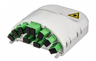 Представляет из себя пластиковый корпус с местами для установки разветвителей и органайзерами для укладки волокон. На лицевой панели расположена адаптерная планка на 10 адаптеров SC типа. Закрывается защитной крышкой, выполненной как и корпус из пластика белого цвета.