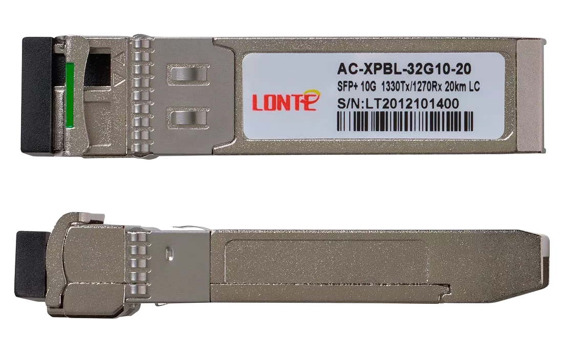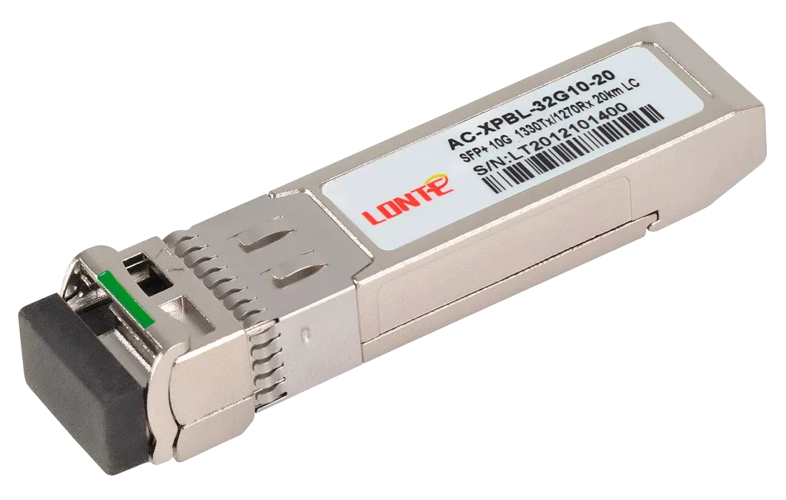 Одноволоконный оптический модуль с форм-фактором SFP+ для 10G Ethernet, соответсвует стандарту 1000Base-BX. Предназначен для работы в одномодовом оптическом волокне (Single-mode fiber, SMF), максимальная дальность 20 км, LC коннектор, рабочая длина волны Tx/Rx: 1330/1270 нм.
