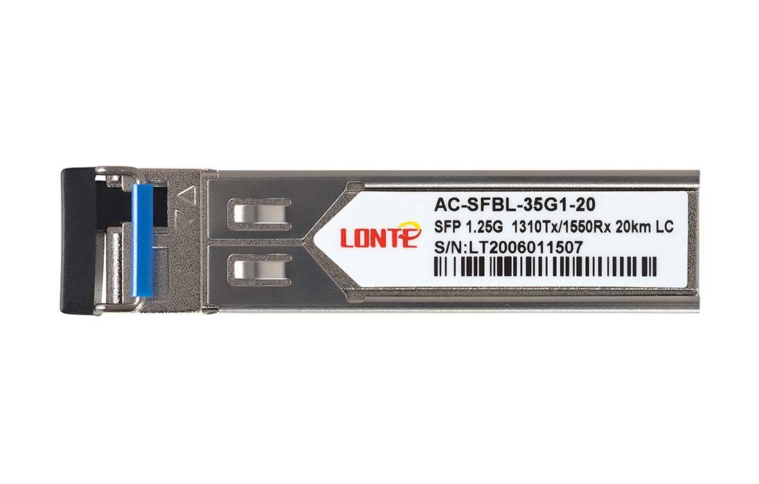 Одноволоконный оптический модуль с форм-фактором SFP для 1G Ethernet, соответствует стандарту 1000Base-BX. Предназначен для работы в одномодовом оптическом волокне (Single-mode fiber, SMF), максимальная дальность 20 км, LC коннектор, рабочая длина волны Tx/Rx: 1310/1550 нм.