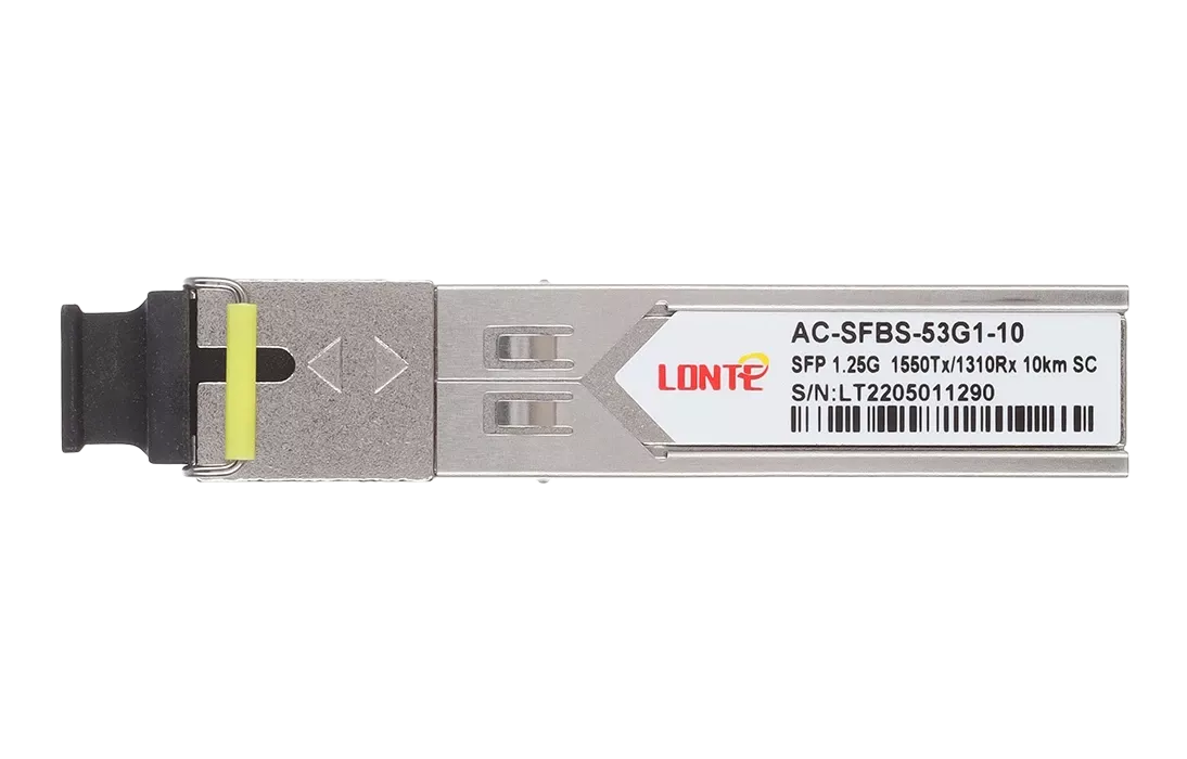 Одноволоконный оптический модуль с форм-фактором SFP для 1G Ethernet, соответствует стандарту 1000Base-BX. Предназначен для работы в одномодовом оптическом волокне (Single-mode fiber, SMF), максимальная дальность 10 км, SC коннектор, рабочие длины волн: Tx1550нм/Rx1310нм