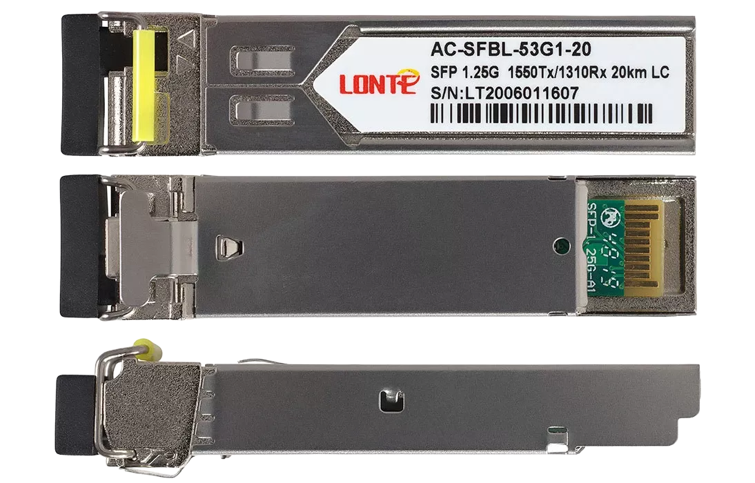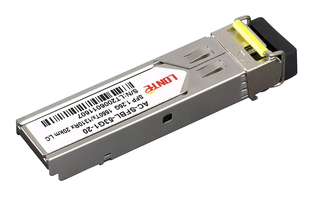 Одноволоконный оптический модуль с форм-фактором SFP для 1G Ethernet, соответствует стандарту 1000Base-BX. Предназначен для работы в одномодовом оптическом волокне (Single-mode fiber, SMF), максимальная дальность 20 км, LC коннектор, рабочая длина волны Tx/Rx: 1550/1310 нм.