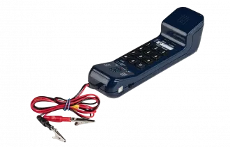 Монтерский телефонный аппарат 4FP 122 40/А Tesla предназначен для специалистов, занимающихся подключением, техническим обслуживанием и ремонтом телефонных линий и оконечного телекоммуникационного оборудования. Данный аппарат предназначен для использования в нормальных климатических условиях. Устройство разрешает тестировать телефонные линии в диапазоне тока питания от 15 до 70 (мА). Индикация отдельных измерений осуществляется прямо на приборе тремя диодами LED. Прибор разрешает контролировать проводимость линии, замыкания линий, передачу низкочастотного сигнала 900 (Гц), полярность линии с помощью двухцветного диода LED, осуществлять световой и акустический контроль наличия тарификационных импульсов (16 кГц), контроль низкочастотного сигнала и мониторинг линии с большим входным сопротивлением. Набор абонентного номера может осуществляться в импульсном режиме (PULSE), частотный режиме (TONE) и смешанном режиме (PULSE - TONE). Долговременное изменение режима набора (PULSE или TONE) разрешает переключатель (P – T), кратковременный переход на частотный режим набора (TONE) осуществится после нажатия кнопки (*). Прибор разрешает повтор последнего набранного номера и вкладывание паузы между сериями (RD/P). Держатель, прочно укрепленный на крышке прибора, разрешает повесить его на монтажную стойку и с помощью карабина (не является составной частью поставки) прикрепленного к держателю, прибор можно повесить на ремень механика или выступ оборудования. Кожаный футляр предназначен для переноса прибора в нерабочем состоянии. Прибору для работы необходимо подключение к батарее 9 В типа 6F22 – батарея не является составной частью поставки прибора. Батарея имеет предназначенное для нее пространство внутри трубки.