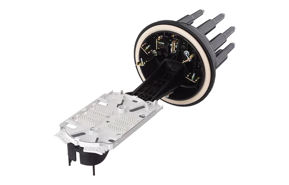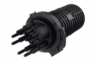 Муфта выполнена из качественной пластмассы и имеет пыле-влагозащищенную тупиковую конструкцию (ввод ОК и вывод дроп-кабелей производится с одной стороны), с уплотнительной прокладкой на стыке кожуха с оголовником.