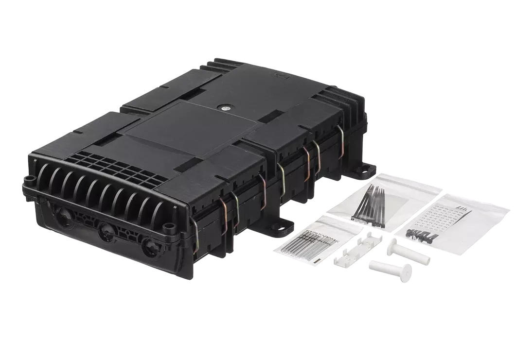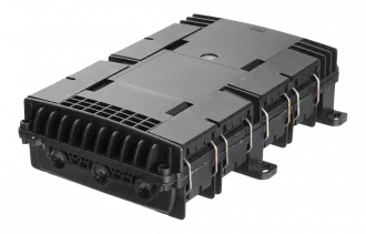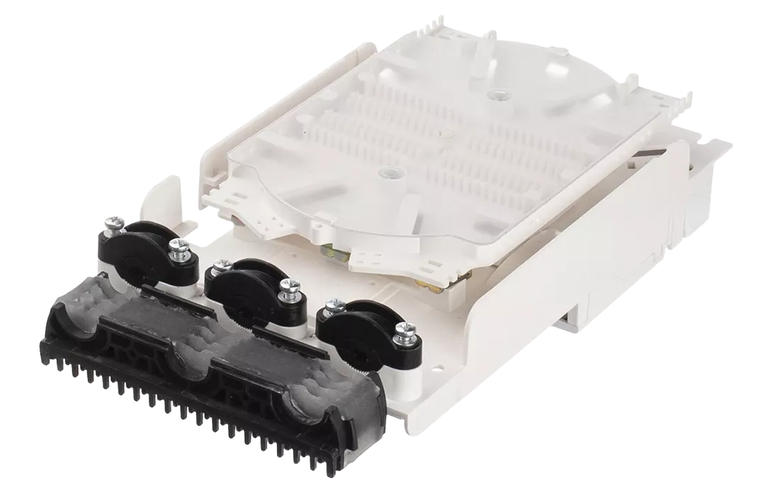 Выполнена из пластмассы и имеет пыле-брызгозащищенную тупиковую конструкцию (ввод ОК и вывод абонентских дроп-кабелей производится с одной стороны).