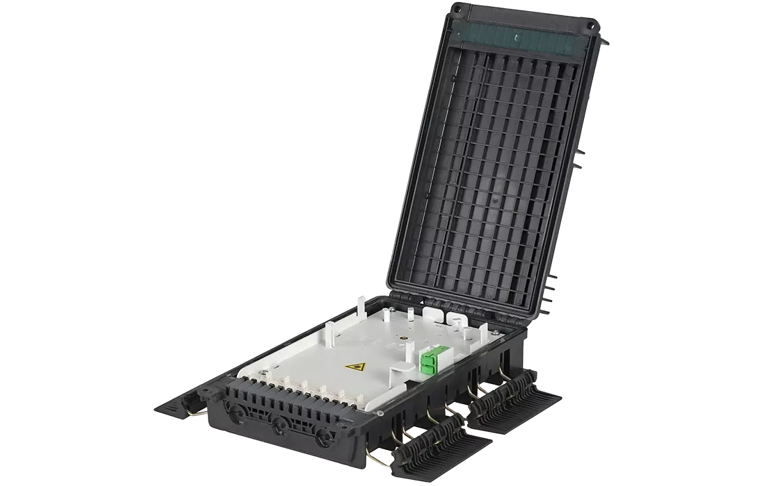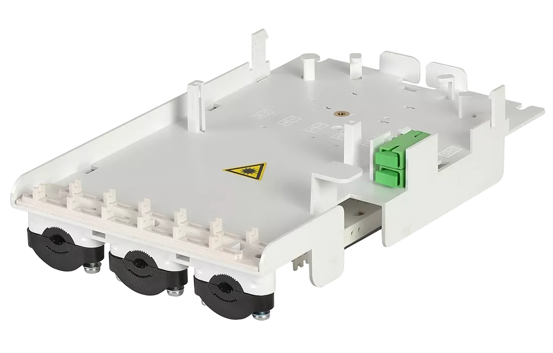 Выполнена из пластмассы и имеет пыле-брызгозащищенную тупиковую конструкцию (ввод ОК и вывод абонентских дроп-кабелей производится с одной стороны).