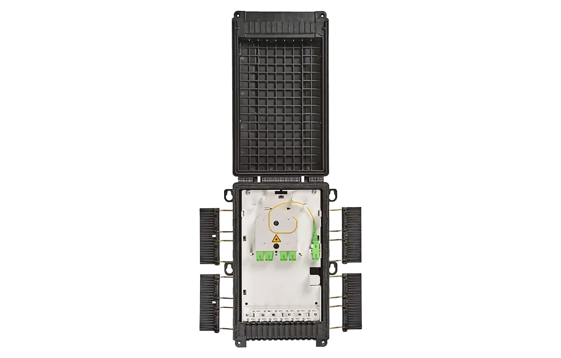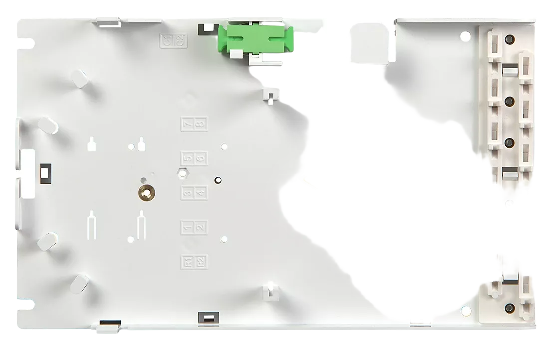 Внутри корпуса установлена съёмная монтажная панель (вставка), с тыльной стороны которой предусмотрено место для укладки транзитной петли оптических модулей, установлены фиксаторы ЦСЭ и кассета КТ-3645 для сварки волокон распределительных ВОК. На лицевой стороне панели находятся гнёзда для установки адаптеров типа SC, а также ложемент Л2-СП, на который можно установить разветвители в мини-корпусах с волокнами длиной 1 метр в буферном покрытии 900 мкм и ложемент Л12-4525 для размещения сварных стыков абонентских дроп-кабелей с пигтейлами.