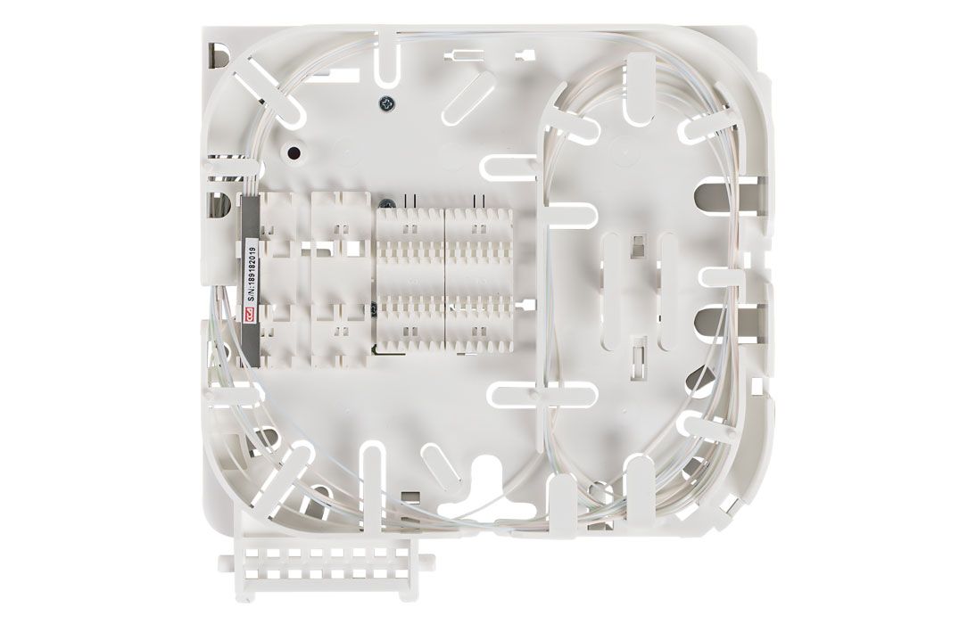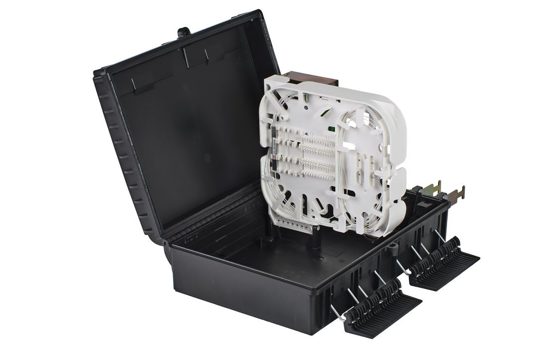 Выполнена из пластмассы и имеет пыле-брызгозащищенную тупиковую конструкцию (ввод ОК и вывод ШОС производится с одной стороны).