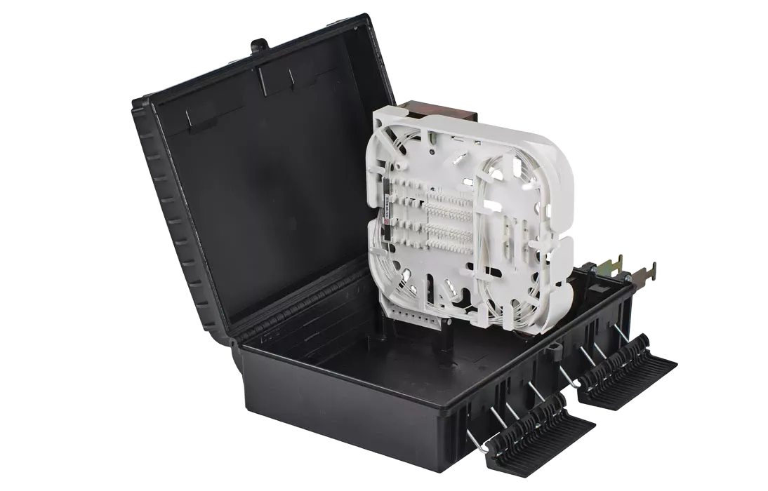 Выполнена из пластмассы и имеет пыле-брызгозащищенную тупиковую конструкцию (ввод ОК и вывод ШОС производится с одной стороны).