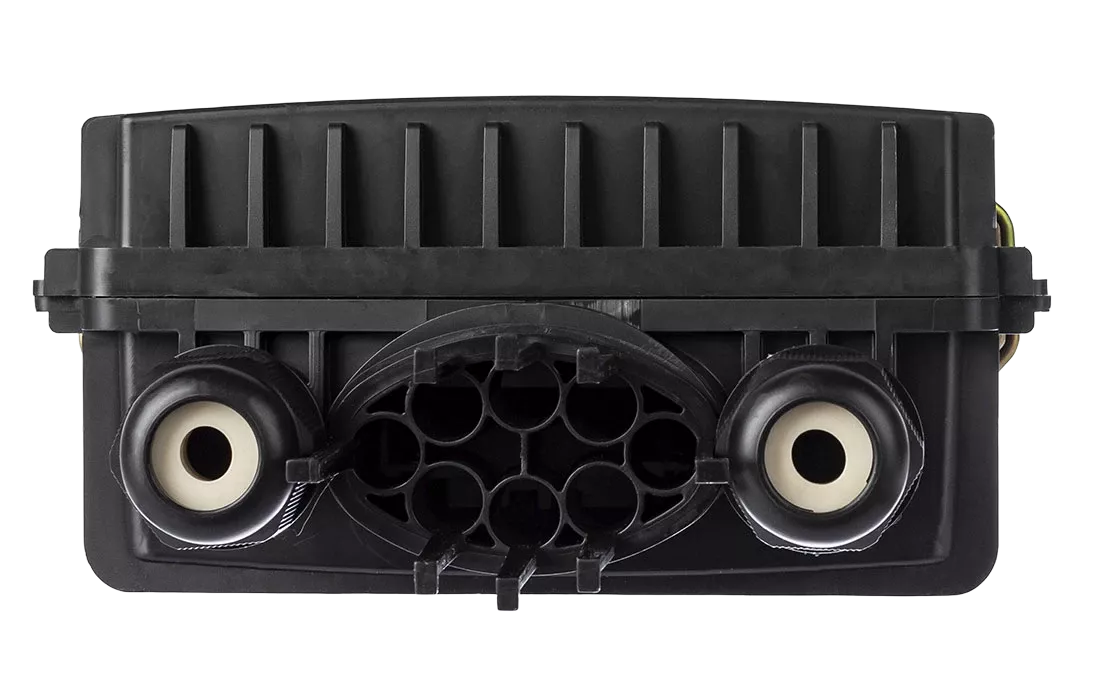 - пылезащищенный вывод до 8 дроп-кабелей круглого профиля диаметром до 5 мм или прямоугольного профиля типа «бабочка».