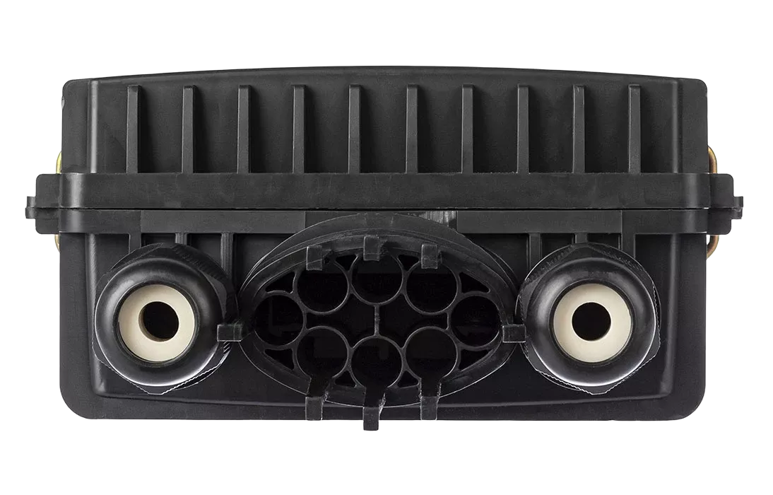 - пылезащищенный вывод до 8 дроп-кабелей круглого профиля диаметром до 5 мм или прямоугольного профиля типа «бабочка».