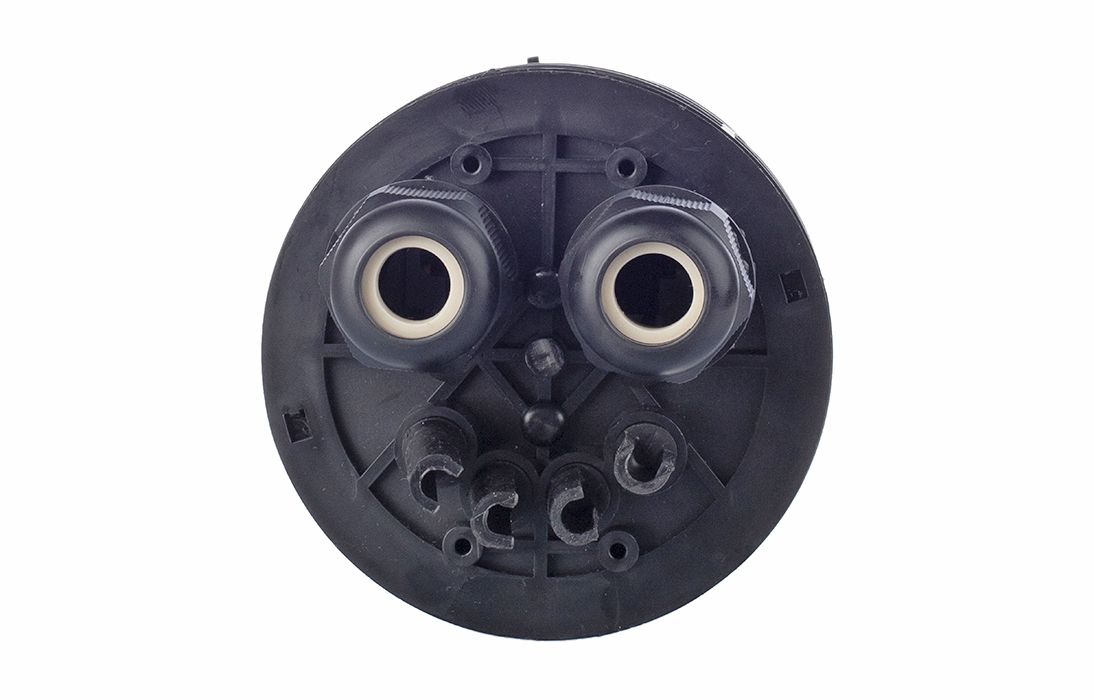 Ввод абонентских дроп-кабелей осуществляется с помощью проходных отверстий на оголовнике, диаметр которых позволяет вводить в муфту дроп-кабели с разъемами SC типа. Герметизация вводов достигается с помощью разрезных эластичных втулок (заглушек).