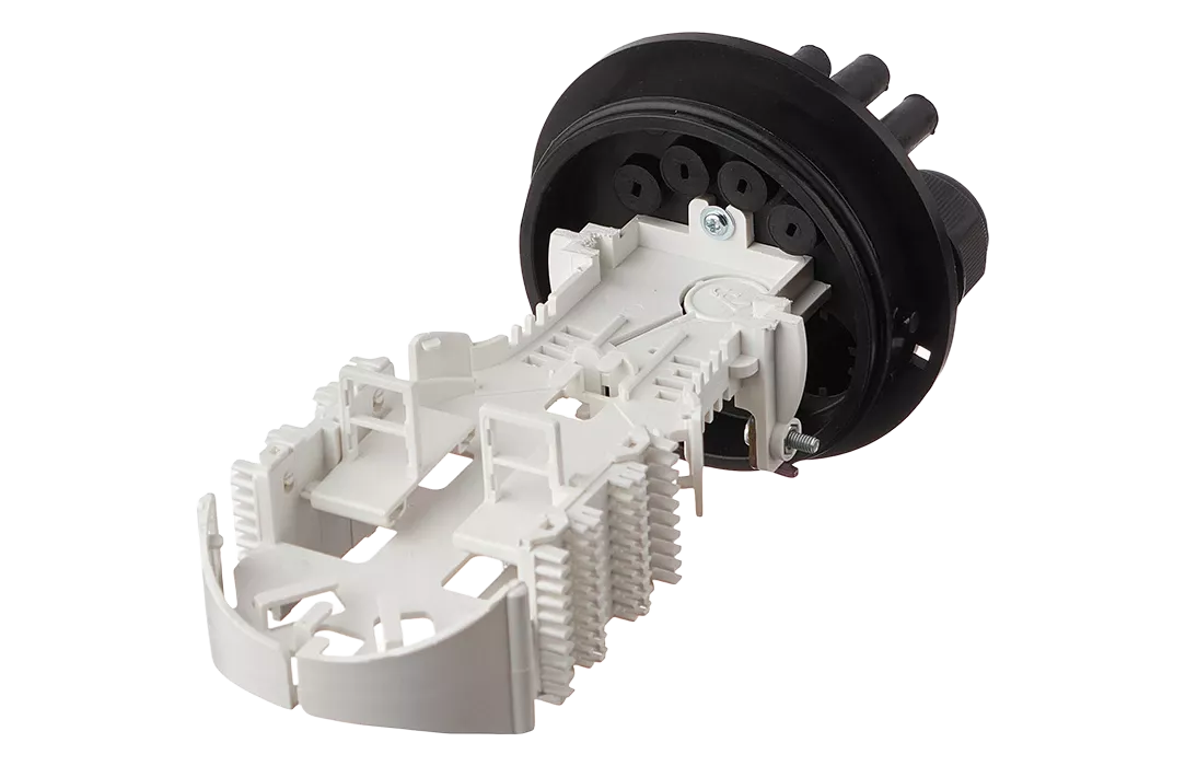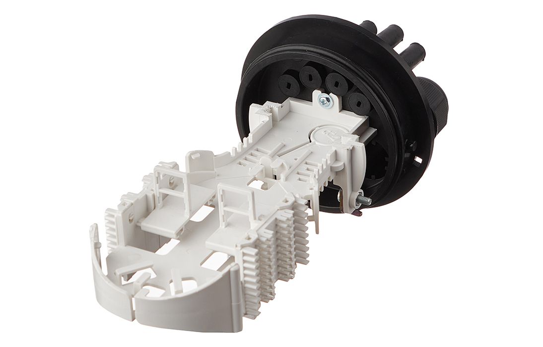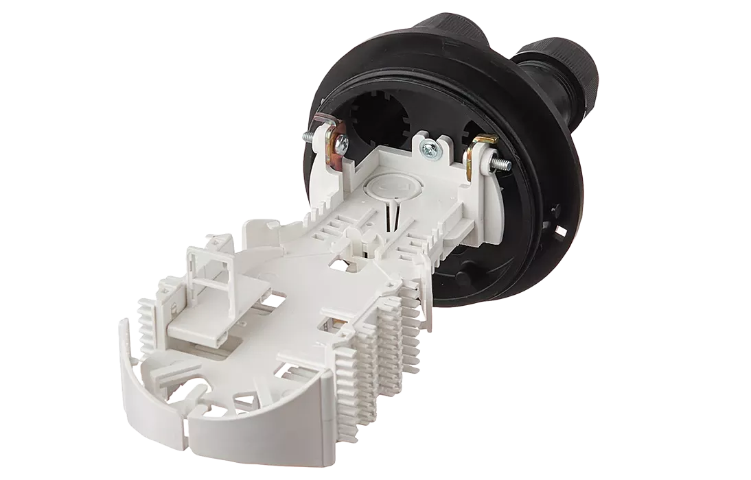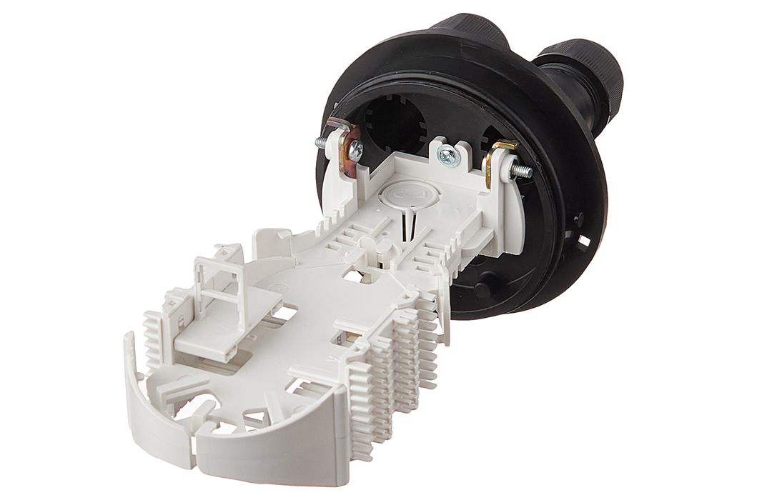В обновлённую конструкцию муфты в комплект поставки уже входят 3 навесных ложемент Л2 SC-Ц8 для установки до пяти адаптеров типа SC и навесной ложемент Л1-СП-Ц8 для размещения разветвителя 1х4 -PLC -SM/0,9 -1,0 м-SC/APC.