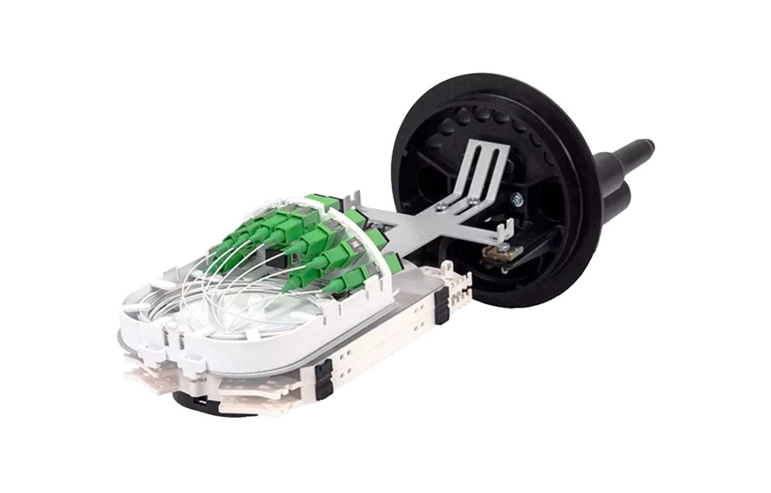 В муфте установлен специальный сплиттерный модуль СМ4, в который в зависимости от комплектации могут быть установлены 10 адаптеров SC-типа и один PLC разветвитель 1х8 или два PLC разветвителя 1х4 оконцованных разъёмами SC типа.