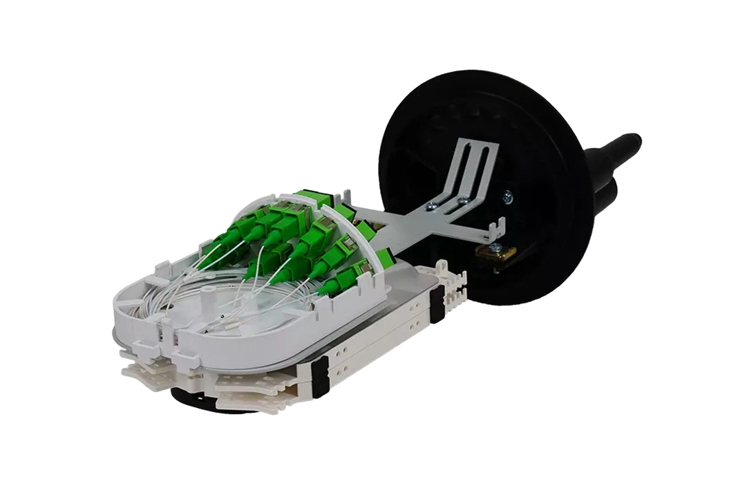 В муфте установлен специальный сплиттерный модуль СМ4, в который в зависимости от комплектации могут быть установлены 10 адаптеров SC-типа и один PLC разветвитель 1х8 или два PLC разветвителя 1х4 оконцованных разъёмами SC типа.