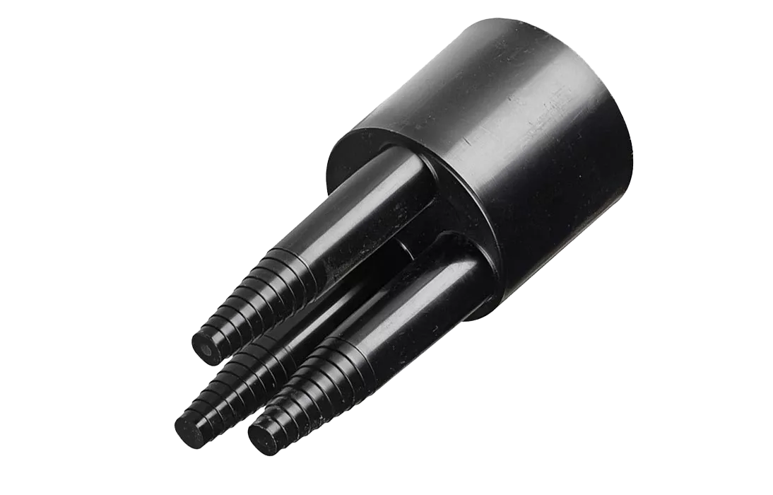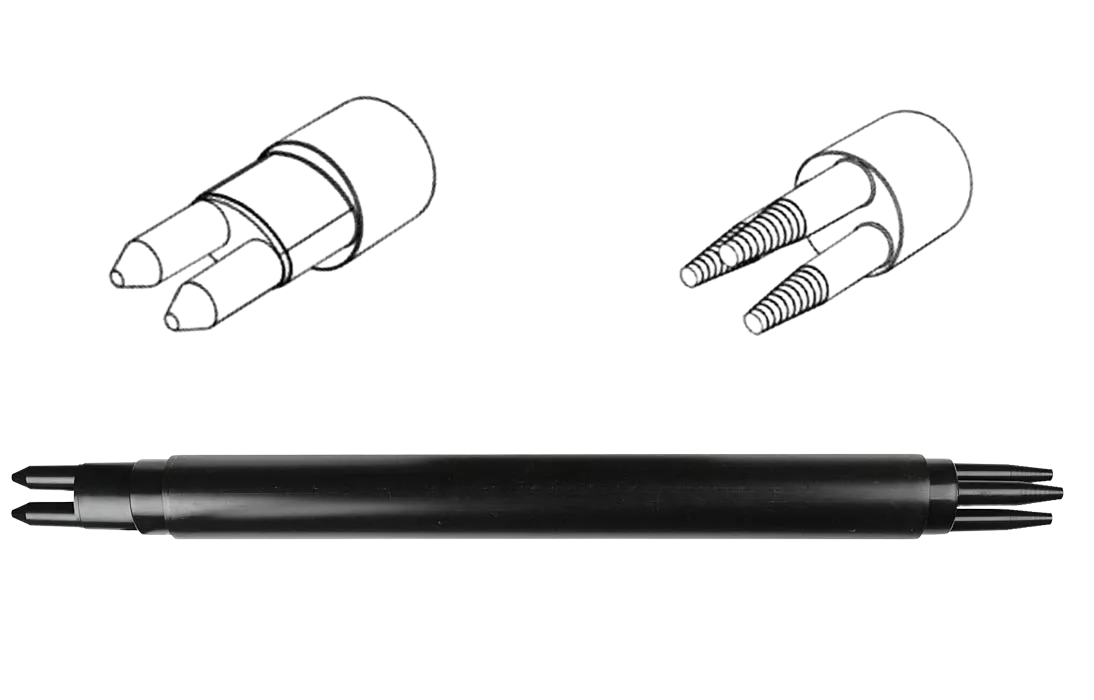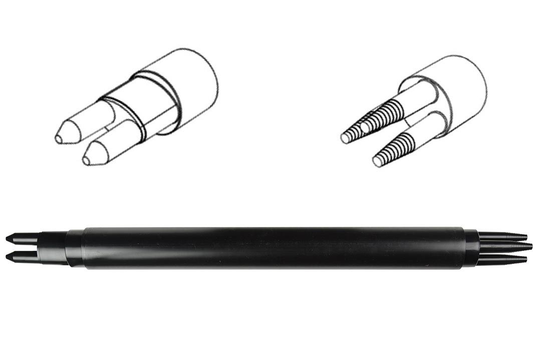 Способ герметизации вводов кабелей, осуществляется с помощью термоусаживаемых трубок ТУТ. Круглые патрубки на оголовнике муфты изначально герметичны и имеют ступенчатую форму с разными диаметрами. Срезая патрубок в определенном месте можно подобрать отверстие максимально близкое к диаметру вводимого кабеля. Таким образом, исключается излишнее натяжение ТУТ после усадки при вводе относительно тонких кабелей. Все патрубки муфты оснащены также индивидуальными узлами крепления ЦСЭ.
