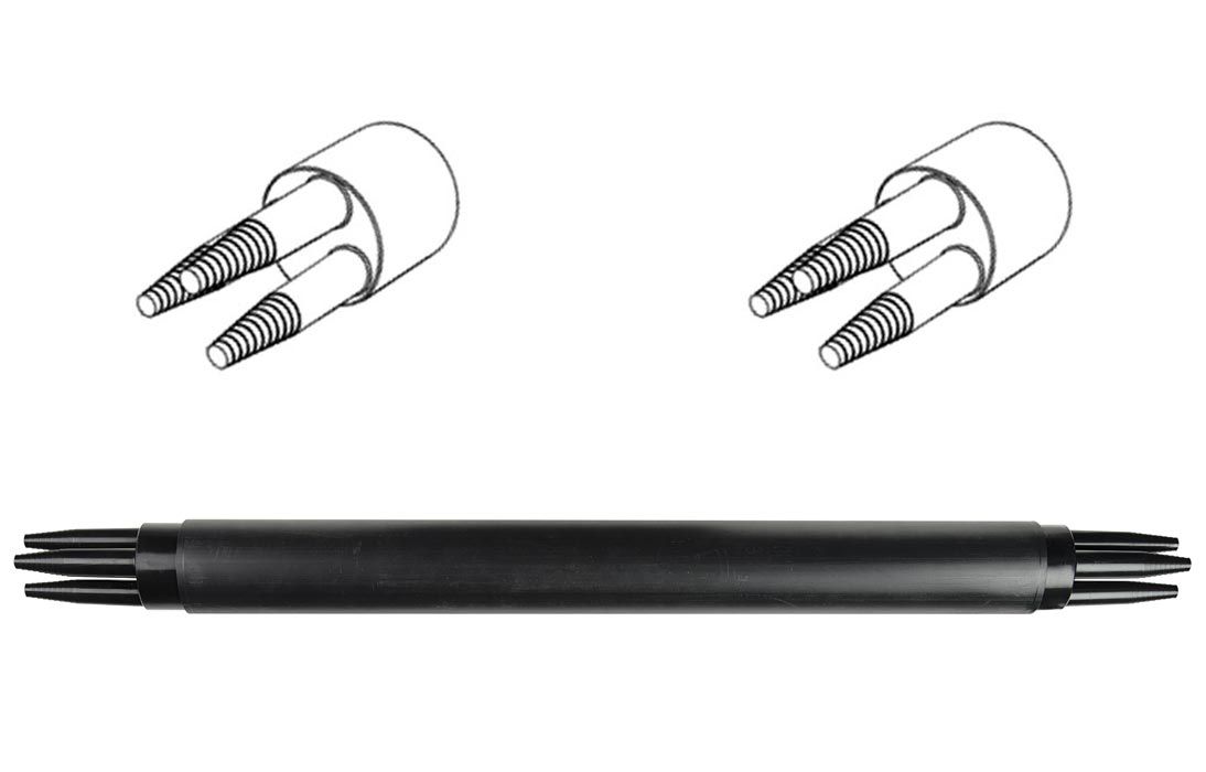 Способ герметизации вводов кабелей, осуществляется с помощью термоусаживаемых трубок ТУТ. Круглые патрубки на оголовнике муфты изначально герметичны и имеют ступенчатую форму с разными диаметрами. Срезая патрубок в определенном месте можно подобрать отверстие максимально близкое к диаметру вводимого кабеля. Таким образом, исключается излишнее натяжение ТУТ после усадки при вводе относительно тонких кабелей. Все патрубки муфты оснащены также индивидуальными узлами крепления ЦСЭ.