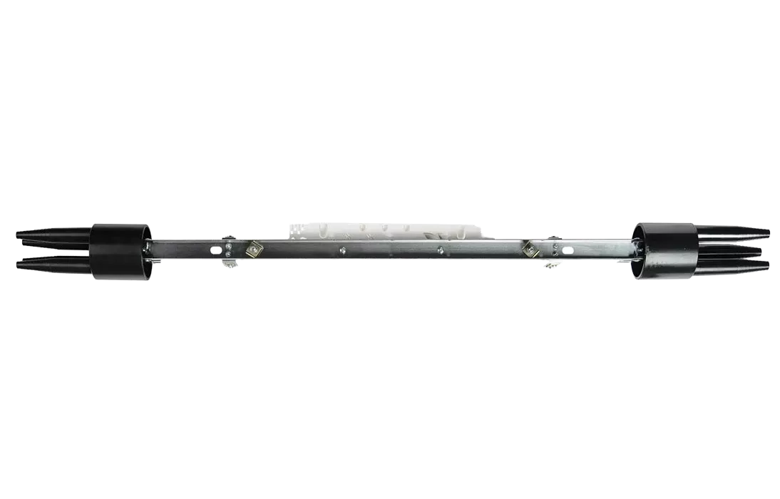 Способ герметизации вводов кабелей, осуществляется с помощью термоусаживаемых трубок ТУТ. Круглые патрубки на оголовнике муфты изначально герметичны и имеют ступенчатую форму с разными диаметрами. Срезая патрубок в определенном месте можно подобрать отверстие максимально близкое к диаметру вводимого кабеля. Таким образом, исключается излишнее натяжение ТУТ после усадки при вводе относительно тонких кабелей. Все патрубки муфты оснащены также индивидуальными узлами крепления ЦСЭ.