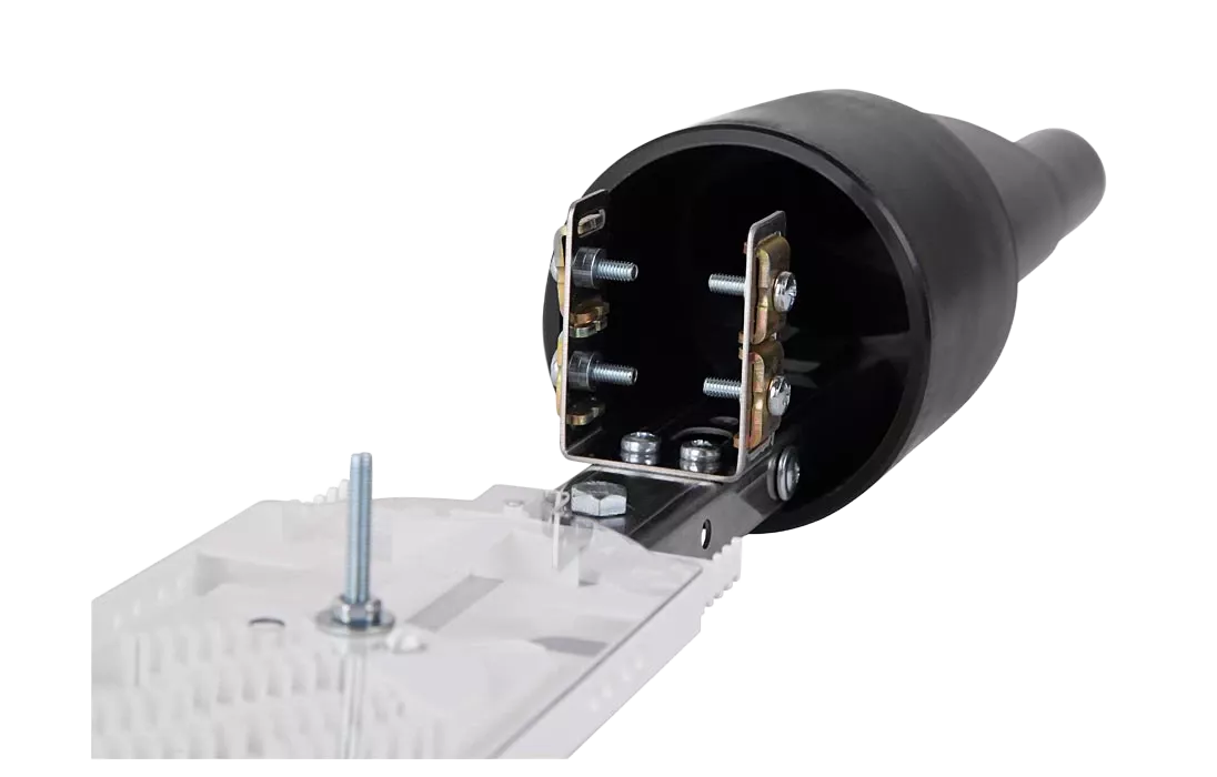 Способ герметизации вводов кабелей, осуществляется с помощью термоусаживаемых трубок ТУТ. Круглые патрубки на оголовнике муфты изначально герметичны и имеют ступенчатую форму с разными диаметрами. Срезая патрубок в определенном месте можно подобрать отверстие максимально близкое к диаметру вводимого кабеля. Таким образом, исключается излишнее натяжение ТУТ после усадки при вводе относительно тонких кабелей. Все патрубки муфты оснащены также индивидуальными узлами крепления ЦСЭ.