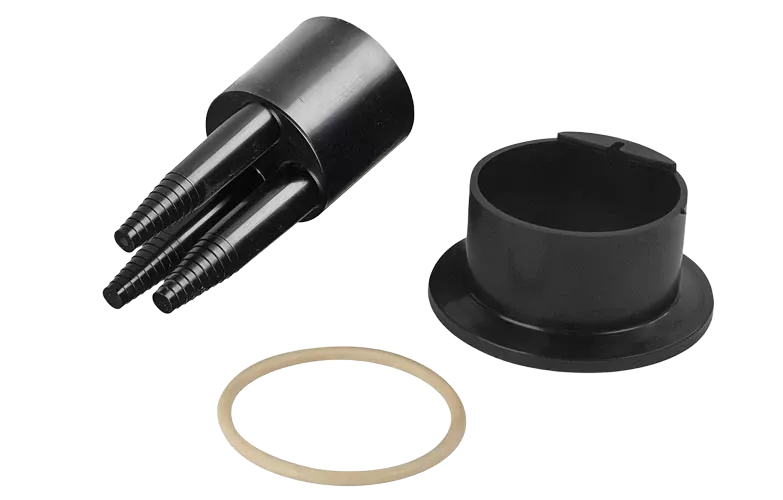 Герметизация корпуса с оголовниками осуществляется при помощи эластичных кольцевых прокладок и армированных пластиковых хомутов с самозатягивающимся замком.