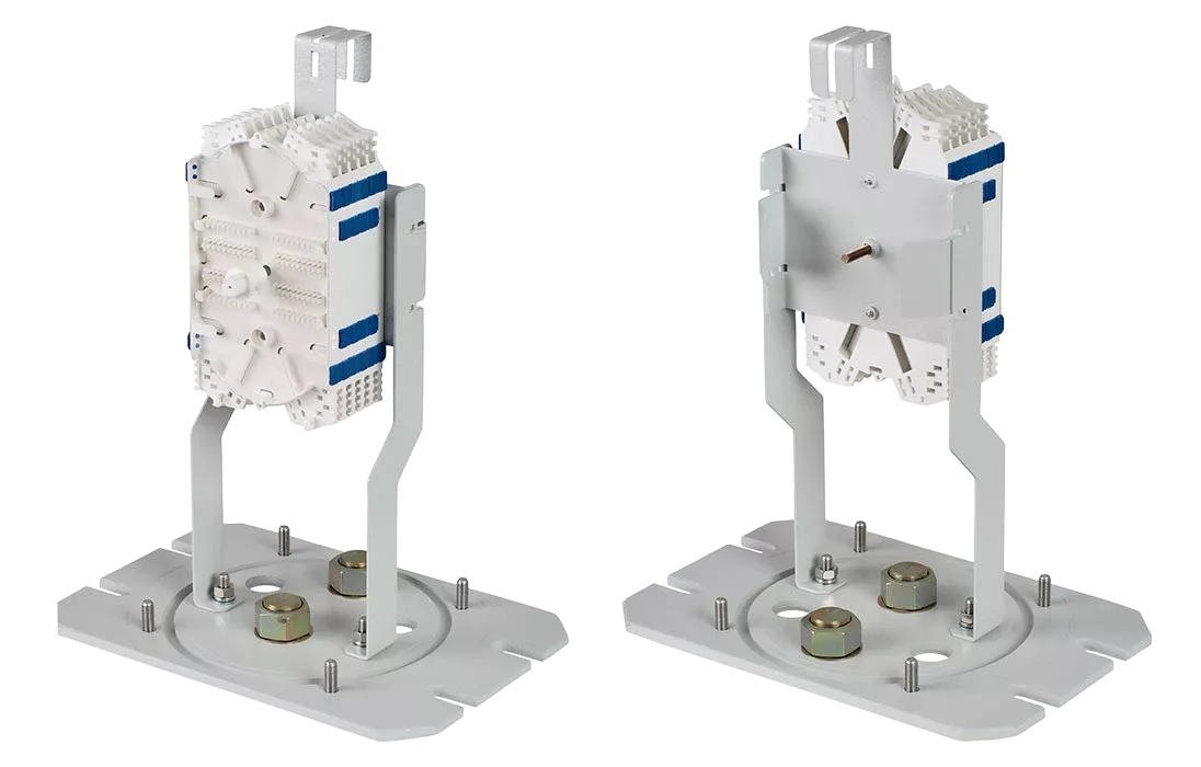 Для установки муфт на опорах ЛЭП используют специальные кронштейны и барабаны шлейфовые вращающейся конструкции для размещения технологического запаса ОКГТ и ответвительного диэлектрического кабеля.