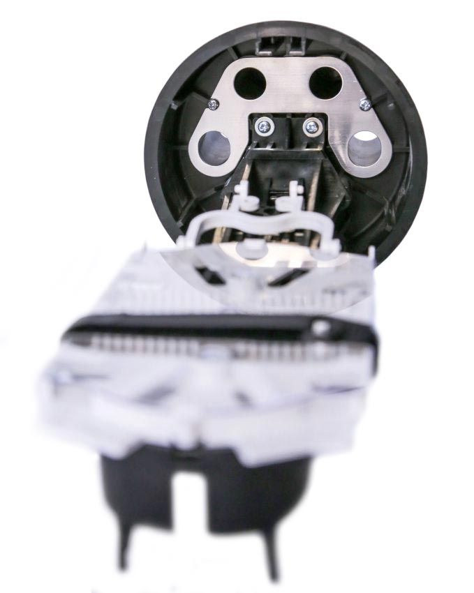 Ввод кабелей осуществляется с помощью специальных кабельных вводов, благодаря которым обеспечиваются надежная механическая фиксация кабельной брони с защитой от скручивания, крепление ЦСЭ, основная и продольная герметизация ОК, возможность изолирования или соединения брони всех ОК непосредственно в муфте, возможность вывода от брони каждого ОК провода заземления (КИП).