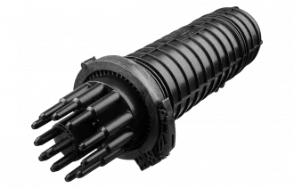 Предназначена для монтажа подвесных самонесущих ОК и оптических кабелей с вынесенным силовым элементом типа «8», а также городских кабелей любых конструкций, в том числе и с броней из стальной гофрированной ленты. В муфте предусмотрен овальный ввод для транзитной петли оптических модулей без разрезания. Выкладка петли модулей осуществляется на лотке с противоположной стороны от кассет.