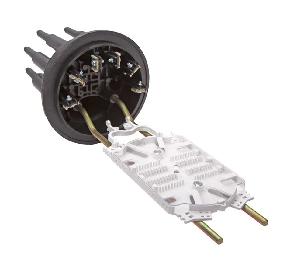 Предназначена для монтажа подвесных самонесущих ОК и оптических кабелей с вынесенным силовым элементом типа «8», а также городских кабелей любых конструкций, в том числе и с броней из стальной гофрированной ленты. В отличие от муфты МТОК-Г3/216 данная муфта в первую очередь предназначена для размещения максимально возможного количества сварных соединений. Поэтому пространство для размещения транзитной петли оптических модулей занято дополнительным рядом кассет и выкладка петли не возможна.