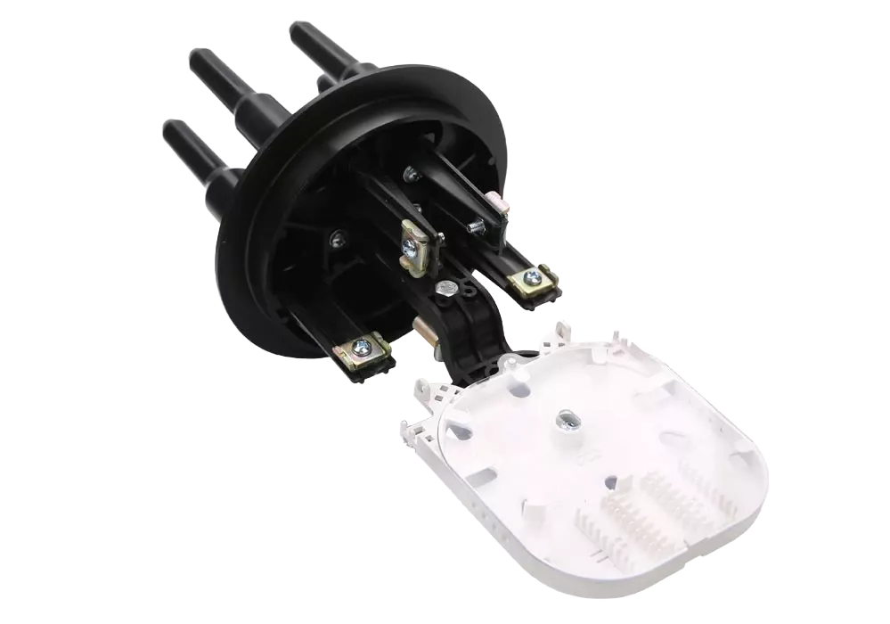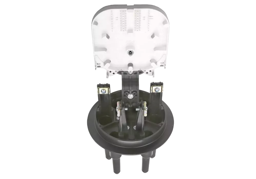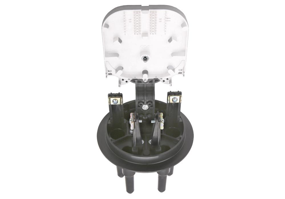 Предназначена для монтажа подвесных самонесущих ОК, оптических кабелей с вынесенным силовым элементом типа «8» емкостью до 48 ОВ. В муфте предусмотрен овальный ввод для транзитной петли оптических модулей без разрезания. Выкладка петли модулей осуществляется на лотке с противоположной стороны от кассет.