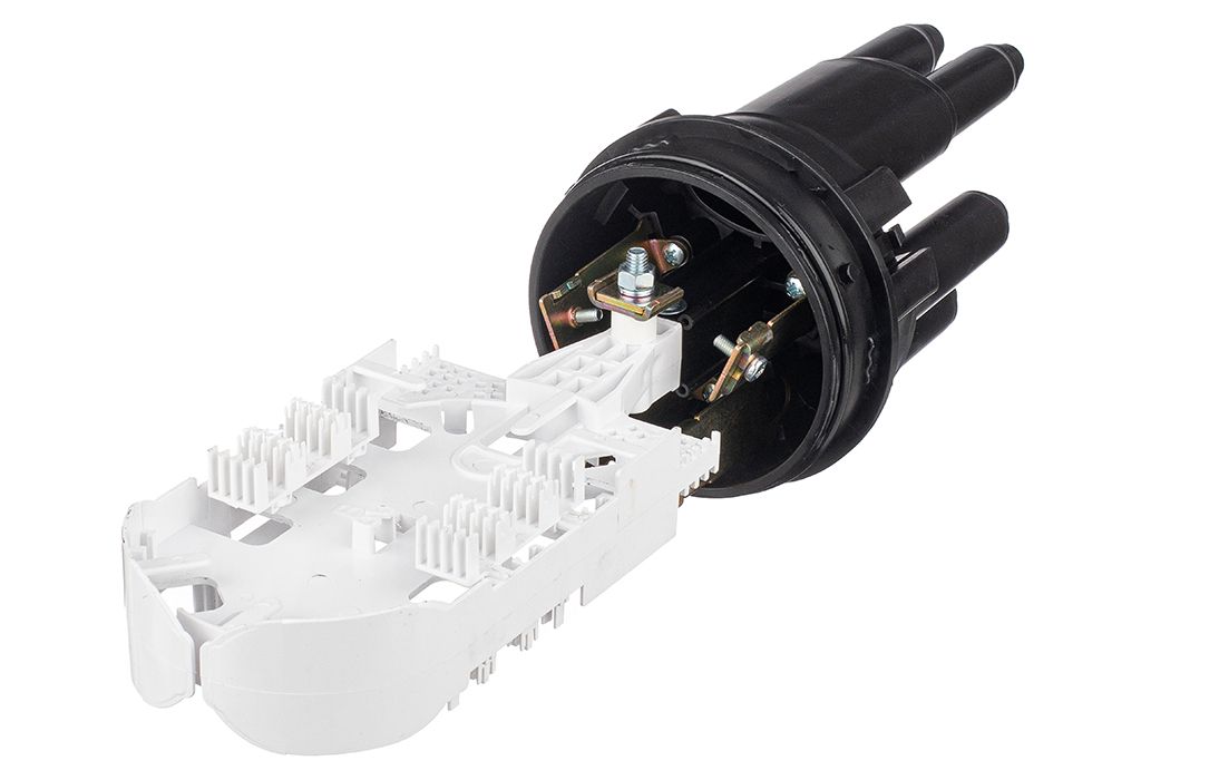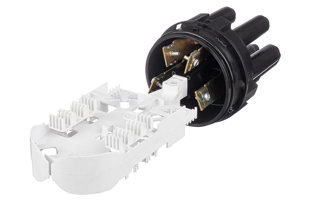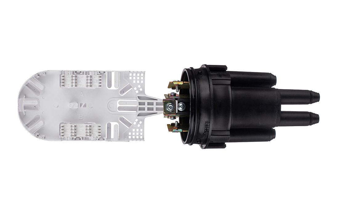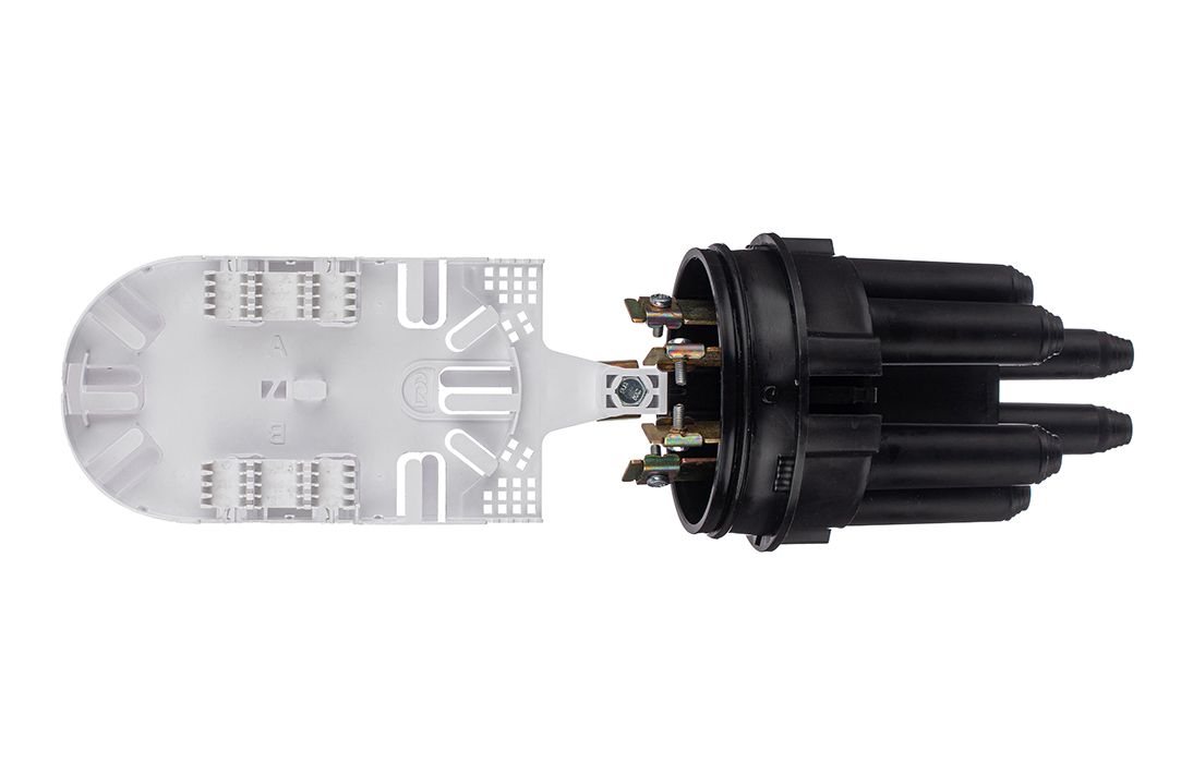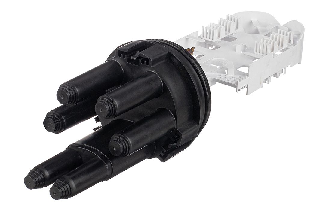 4) Овальный патрубок с 2-мя добавленными пальцами и расширением возможности ввода до 6 оптических кабелей в малогабаритную муфту.
