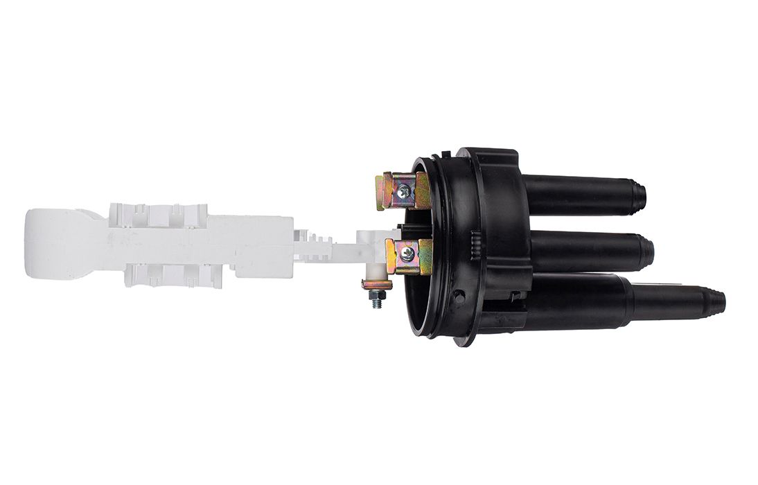 На оголовнике муфты 4 круглых патрубка для ввода кабелей диаметром 6-16 мм и 2 круглых патрубка на овальном патрубке для ввода кабелей 6-14 мм.