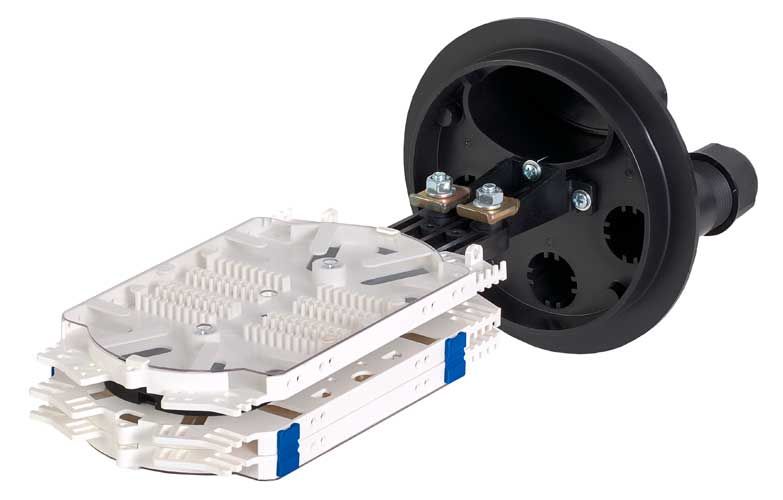 Предназначена для монтажа подвесных самонесущих ОК, оптических кабелей с вынесенным силовым элементом типа «8», а также городских кабелей любых конструкций. В муфте предусмотрен овальный ввод для транзитной петли оптических модулей без разрезания. Выкладка петли модулей осуществляется на лотке с противоположной стороны от кассет.