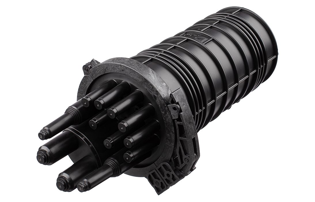 Особенностью муфты является наличие большого числа патрубков для ввода дроп-кабелей, которые герметизируются ТУТ, что позволяет размещать муфту как на опорах, так и в колодцах кабельной канализации.