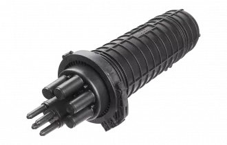 Предназначена для монтажа любого оптического кабеля (кроме подводных). Достигается это за счет использования специальных кабельных вводов, каждый из которых в свою очередь охватывает определенную группу кабелей. Как и муфта МТОК-В3/288 данная муфта в первую очередь предназначена для размещения максимально возможного количества сварных соединений. Поэтому пространство для размещения транзитной петли оптических модулей занято дополнительным рядом кассет и выкладка петли не возможна.