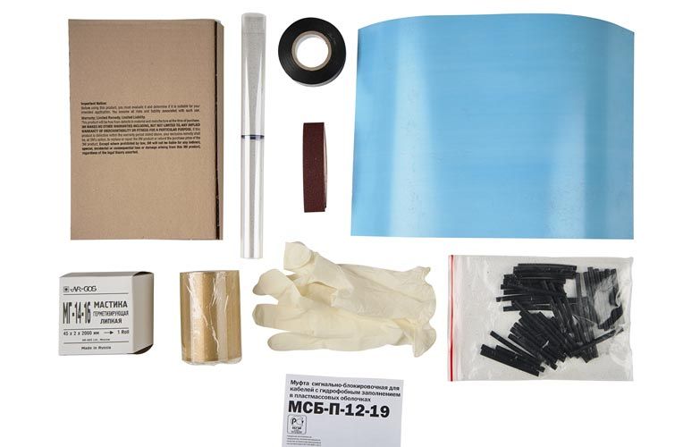 По способу монтажа это компрессионные муфты, в которых жилы сращивают ручной скруткой с пропайкой и с изолированием скруток термоусаживаемыми гильзами. Герметизируется муфта МСБ-П двумя трубками ТУТ.