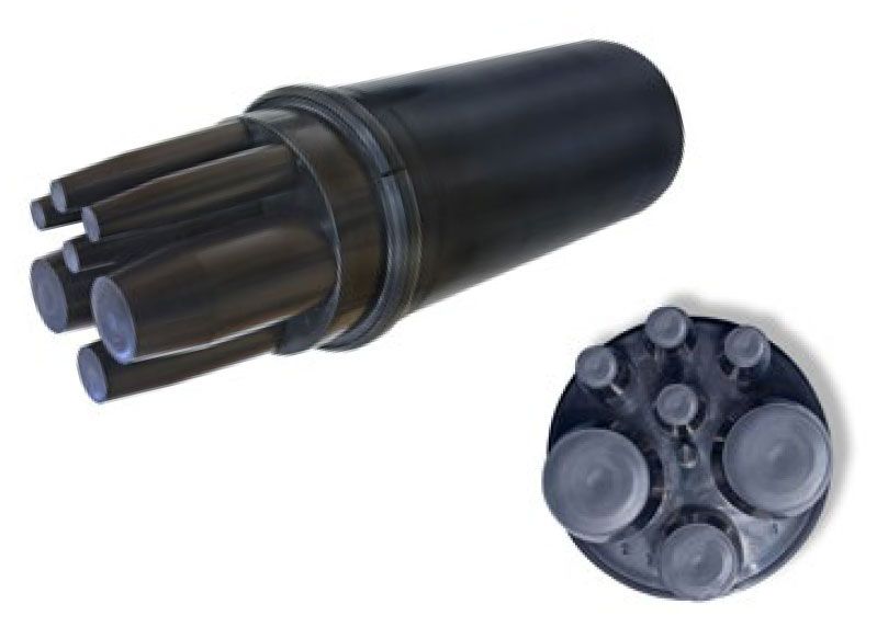 В каждую муфту можно ввести два основных кабеля ёмкостью до 30-ти пар с алюминиевыми оболочками и бронёй, а также и 5 – 6 ответвляющихся кабелей любого типа.