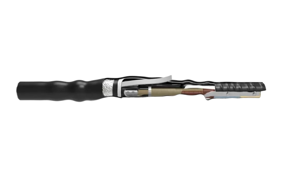 Соединительная термоусаживаемая муфта состоит из термоусаживаемых перчаток, термоусаживаемых трубок изоляции жил, манжет на соединитель, провода заземления, болтовых соединителей и сопутствующих комплектующих. Муфта комплектуется паяным комплектом заземления.